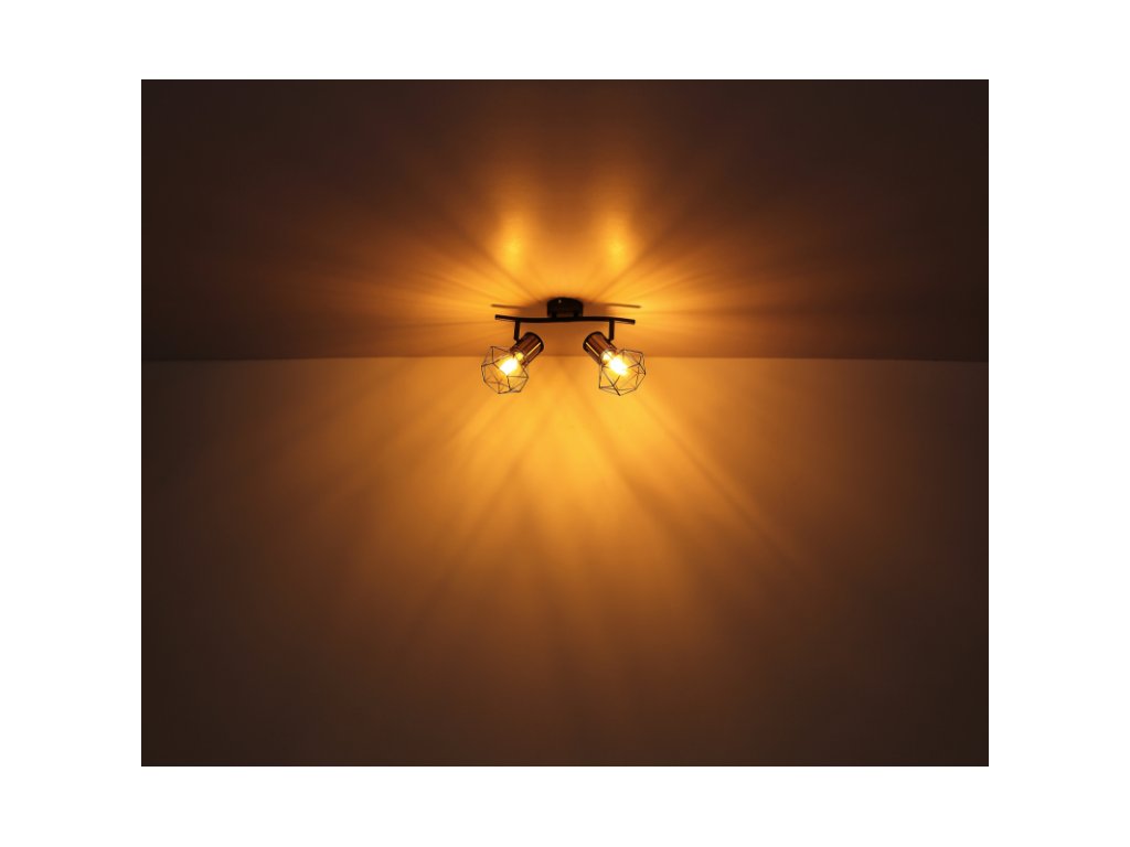 Stropní a nástěnné svítidlo, kov černý, kovová mřížka černá, DxŠxV: 34x13x19 cm, bez žárovek 2xE27, max. 40W 230V.
