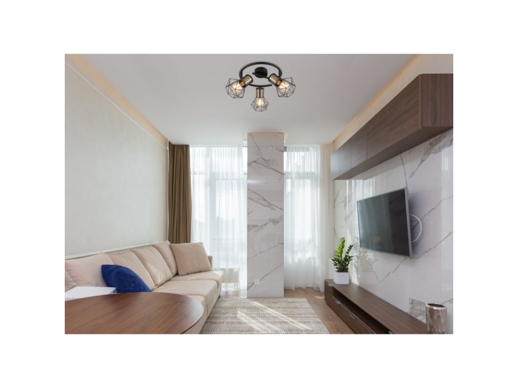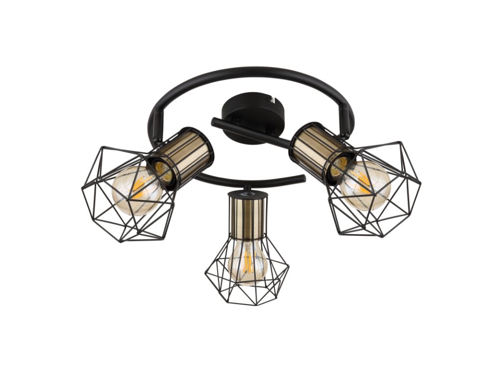 Stropní svítidlo, kov černý, kovová mřížka černá, průměr 29 cm, výška 19 cm, bez žárovek 3xE27, max. 40W 230V.