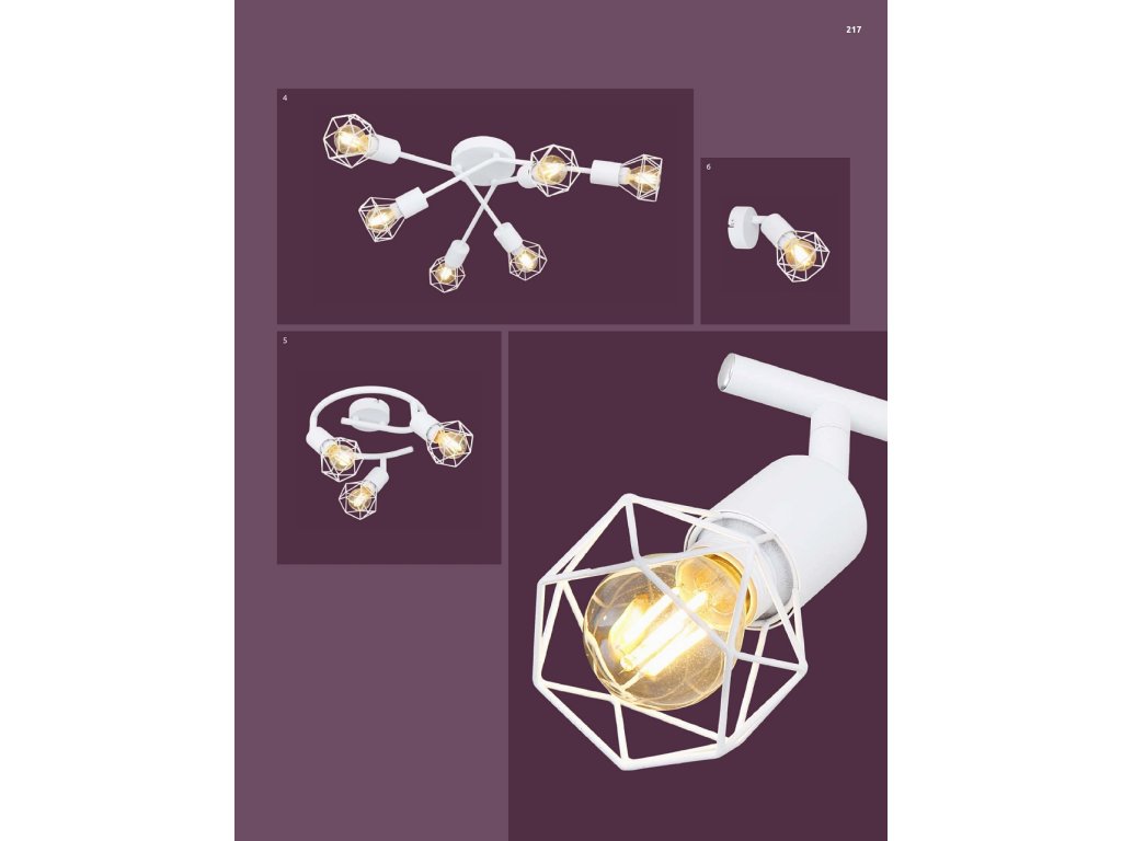 Stropní svítidlo Xara I zaujme svým elegantním designem. Šest nepohyblivých, vzrušivě uspořádaných bílých kovových klecí ve tvaru diamantu by mělo přitáhnout pozornost každého. Bodová světla tohoto stropního bodového svítidla jsou každé opatřena paticí E14, která vám umožní vybrat si tu správnou žárovku (max. 40W) pro vás a určit tak barvu světla a intenzitu světla. Pro jejich úsporu energie a dlouhou životnost doporučujeme LED žárovky z naší nabídky. Obraz ve vašich čtyřech stěnách můžete doplnit dalšími reflektory z této série.
