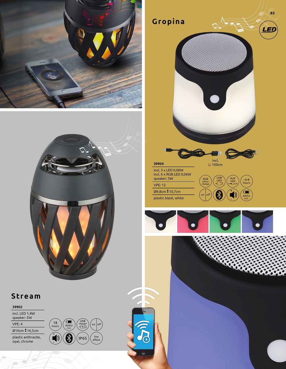Lampička GROPINA 39904 GLOBO s reproduktorem | LED | reproduktor Bluetooth |