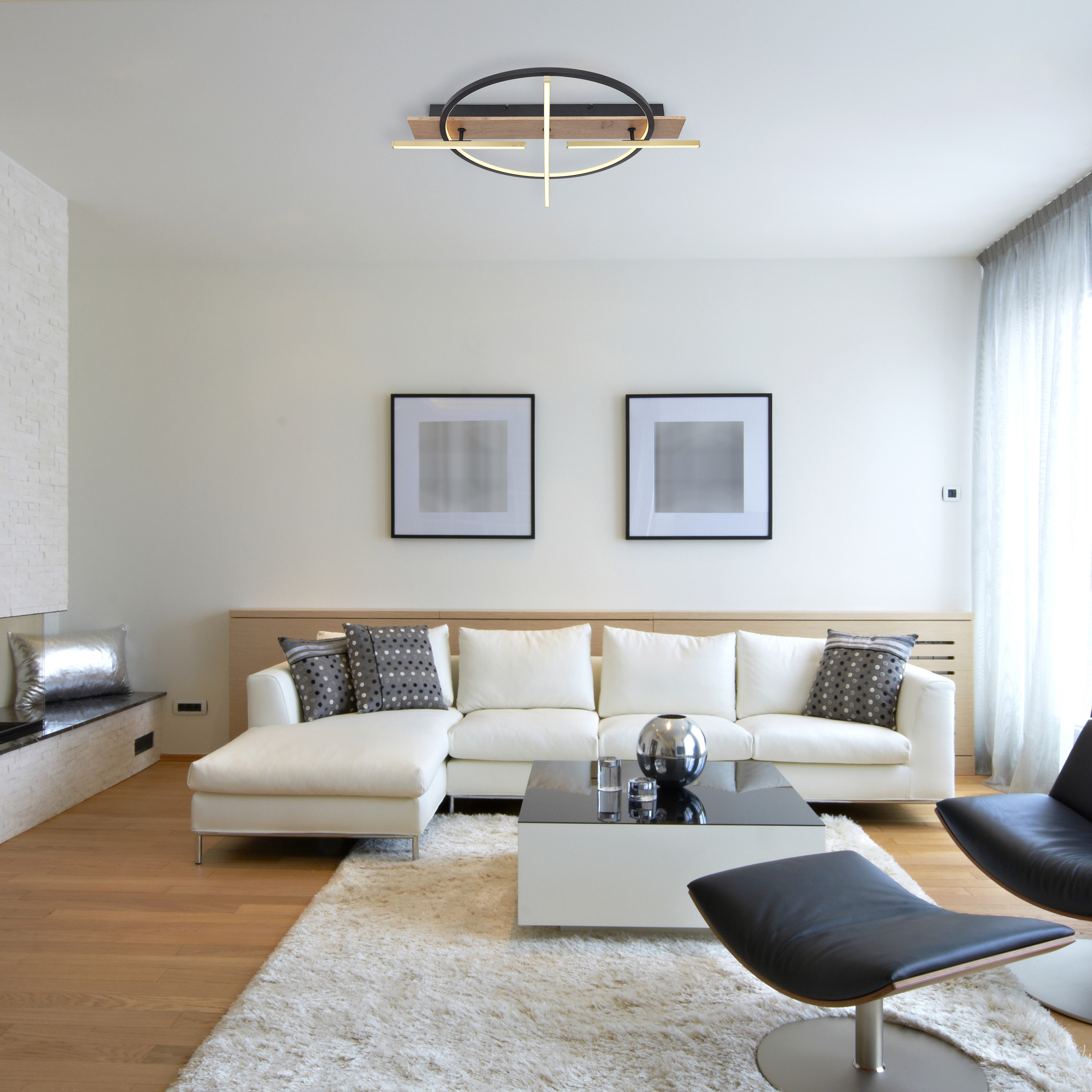 Stropní svítidlo kov černý mat, MDF imitace dřeva, hliník černý mat, plast opál, několik úrovní...