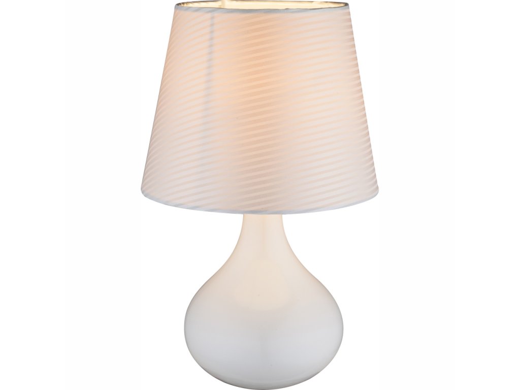 Krásná stolní lampička Travis diskrétně zapadne do každé místnosti. S průměrem 17 cm a výškou 27 cm má tento model baňatou bílou keramickou základnu a bílé látkové stínidlo. Tato lampa se ovládá pomocí vypínače a přiložený kabel má délku 1,2 metru. Pod stínidlem je patice E14, která umožňuje libovolnou volbu světelného zdroje (max. 40W). LED žárovky doporučujeme pro jejich dlouhou životnost a úsporu energie.