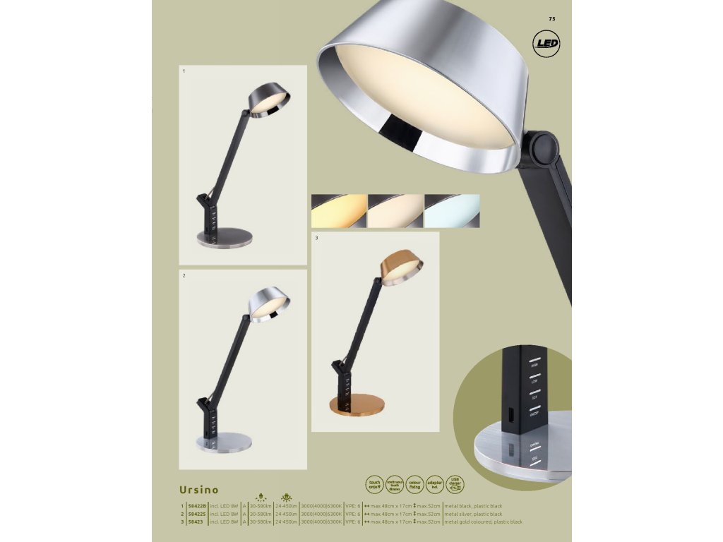 Černá stolní lampička přináší skvělé světlo zpět na váš stůl. Tato 51,5 cm vysoká stolní lampička s přiloženým LED světelným zdrojem (8W) poskytuje 450 lumenů světla. Barvu světla lze navíc dle přání zafixovat ve třech úrovních a je také stmívatelná. (Teplá bílá 3000K – studená bílá 6300K). Díky nízké spotřebě energie je tato LED lampa velmi energeticky úsporná a také velmi šetrná k životnímu prostředí. Jako další funkci nabízí toto světlo USB port. Tato LED lampa jistě potěší každého majitele svým jedinečným kouzlem..