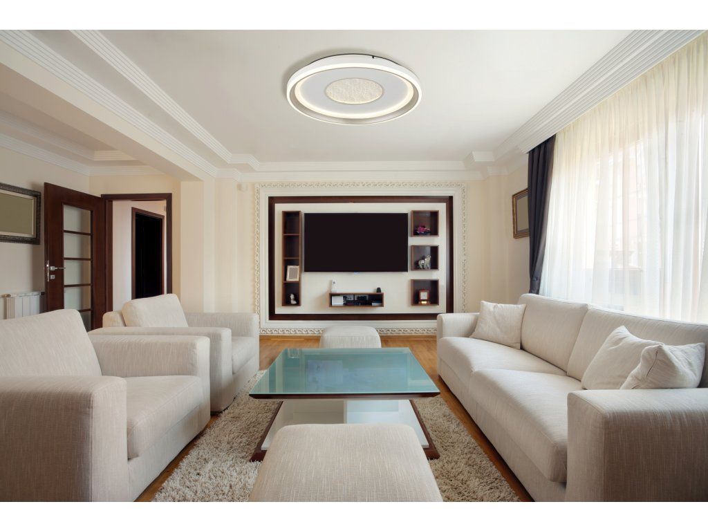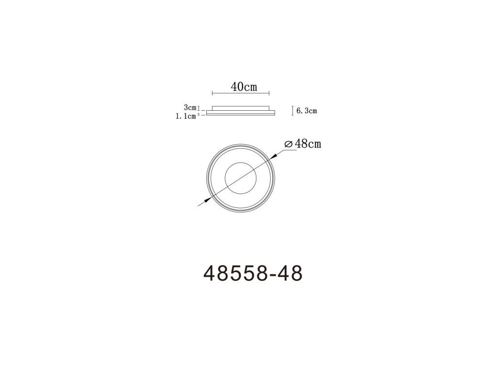Stropní svítidlo, kovové bílé, plastové v barvě šampaň, akrylové bílé, akrylové zrcadlo, stmívatelné, fixace barvy, paměťová funkce, noční světlo, časovač, dálkové ovládání, šířka: 480mm, hloubka: 63mm, včetně LED 48W 230V, výkon 260-2640lm, CCT 2700-6000K.