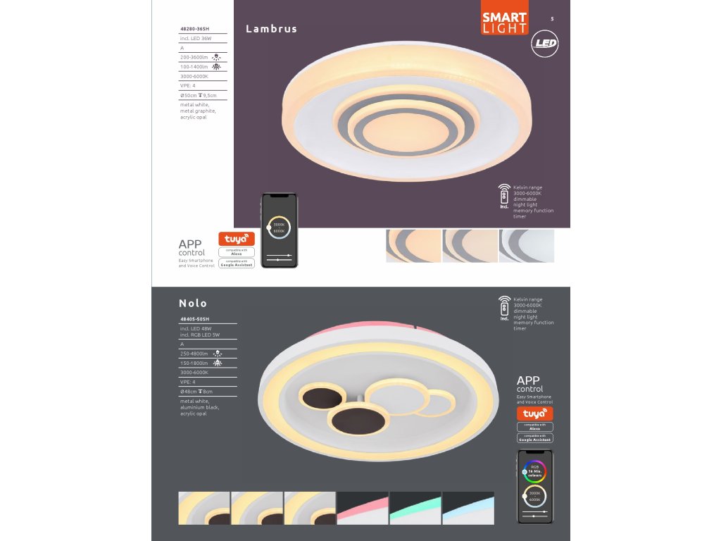 S tímto moderním LED stropním světlem (průměr 50 cm) vnesete do svých čtyř stěn špičkovou technologii. Je vybaveno paměťovou funkcí, měničem barev a dálkovým ovládáním. Vrcholem je však funkce Smart Home. Světlo je kompatibilní se Smart Home a Alexa a lze jej ovládat hlasovým vstupem. Světelný objekt má dále 36W LED desku s životností 20 000 hodin. Toto svítidlo Smartlight lze snadno ovládat pomocí aplikace Tuya Smart (Android TM / IOS).