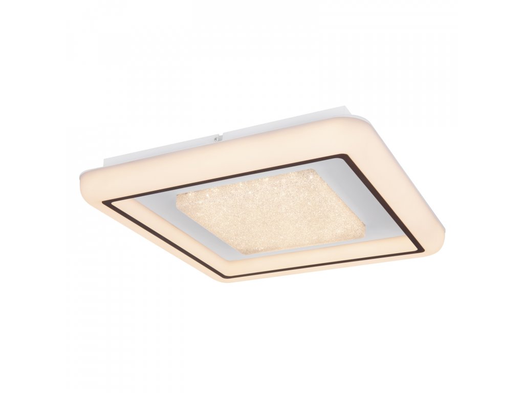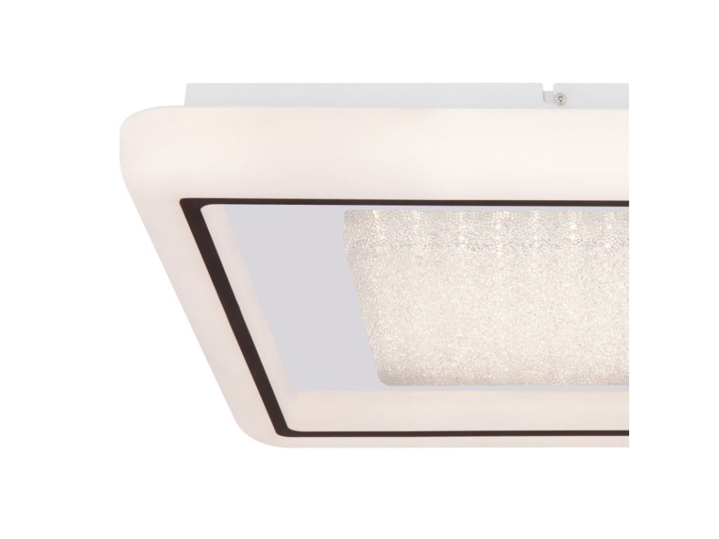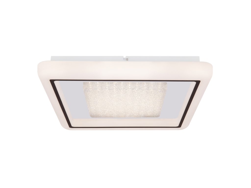 Toto hranaté stropní svítidlo SILVIE (47 x 47 cm) zaujme svým nadčasovým designem. Kombinace bílého kovu a chromu ve spojení s opálovým akrylovým sklem dává tomuto světlu univerzální použitelnost. Svítidlo se zahrnutým 36W LED osvětlovačem poskytuje až 3 000 lumenů silného světla s barvou světla od teplých 3 000 Kelvinů po studených 6 000 Kelvinů. Barvy lze fixovat pomocí dálkového ovladače. Kromě toho má svítidlo funkci nočního světla.