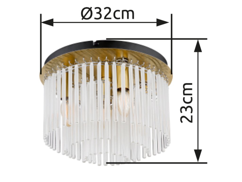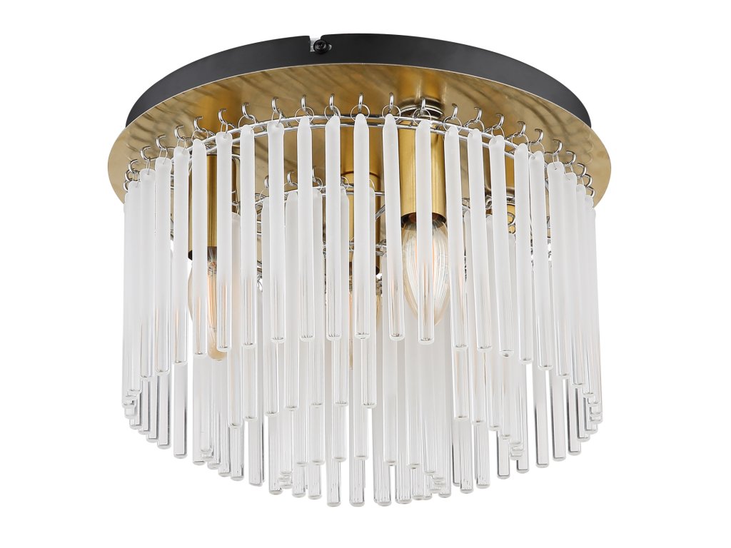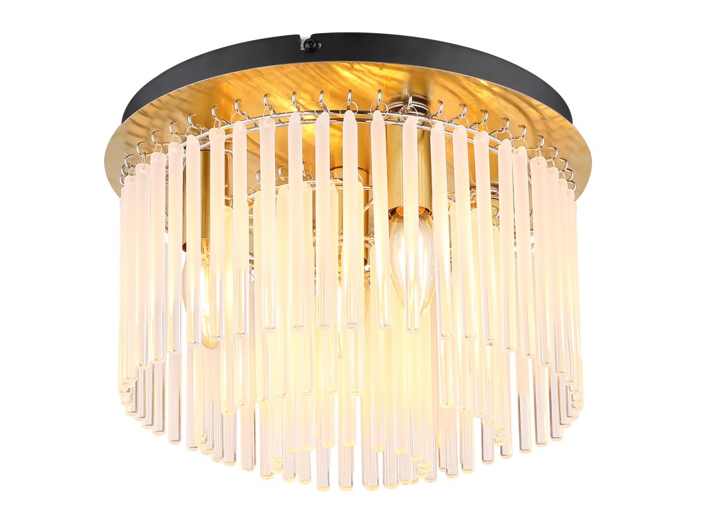 Stropní svítidlo, kov zlatá barva matná, černá, skleněné tyče bílé, průhledné, průměr 320 mm, výška 230 mm, bez žárovek 5x E14, max. 40W 230V
