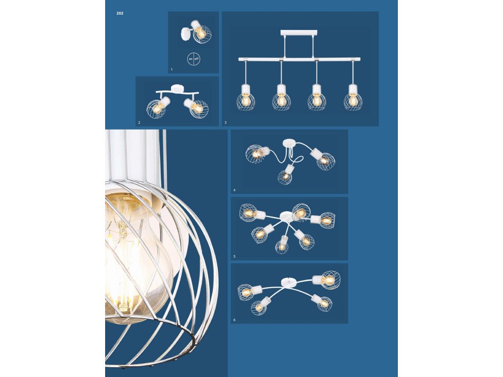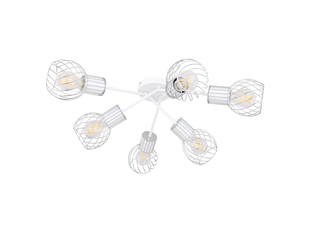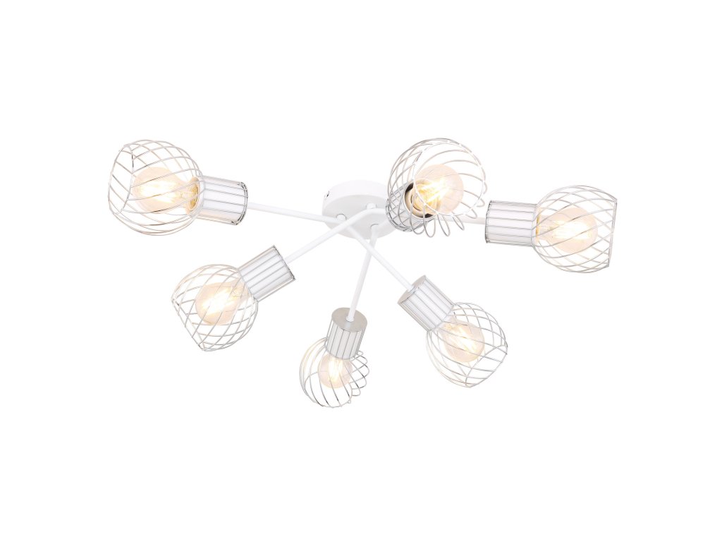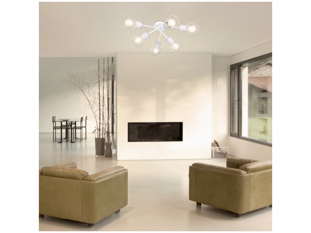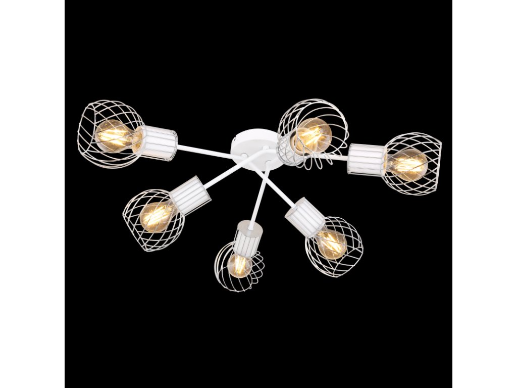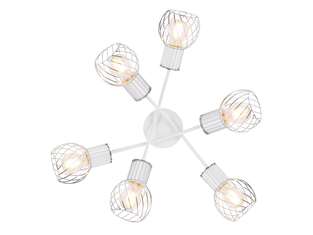 Stropní svítidlo (průměr 70 cm) ze série Maida zaujme kombinací moderních prvků a retro vzhledu. Výrobek je veden v bílé a chromové optice, stínítko tvoří zakřivená drátěná síť. 6 vestavěných patic E27 je navrženo pro maximální výkon 40W a umožňuje stmívání i nestmívatelné žárovky a také výměnu žárovek.