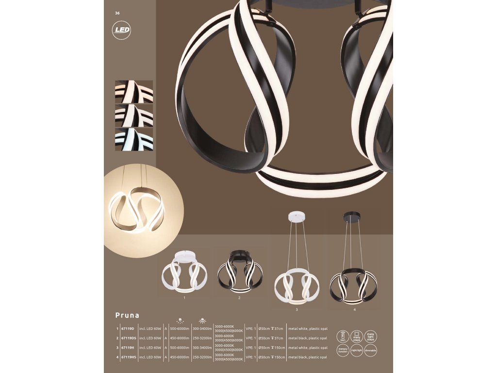 Černé stropní LED svítidlo PRUNA se popisuje jako futuristické a moderní. S přiloženým dálkovým ovladačem si můžete vybrat mezi následujícími třemi barvami světla 3000 - 4500 - 6000 Kelvinů a to vše z pohodlí vašeho gauče. Okořeňte svou ložnici nebo obývací pokoj a dodejte svým čtyřem stěnám špičkovou technologii. 60W LED plošný spoj s výkonem 3400 lumenů má životnost 20 000 hodin..