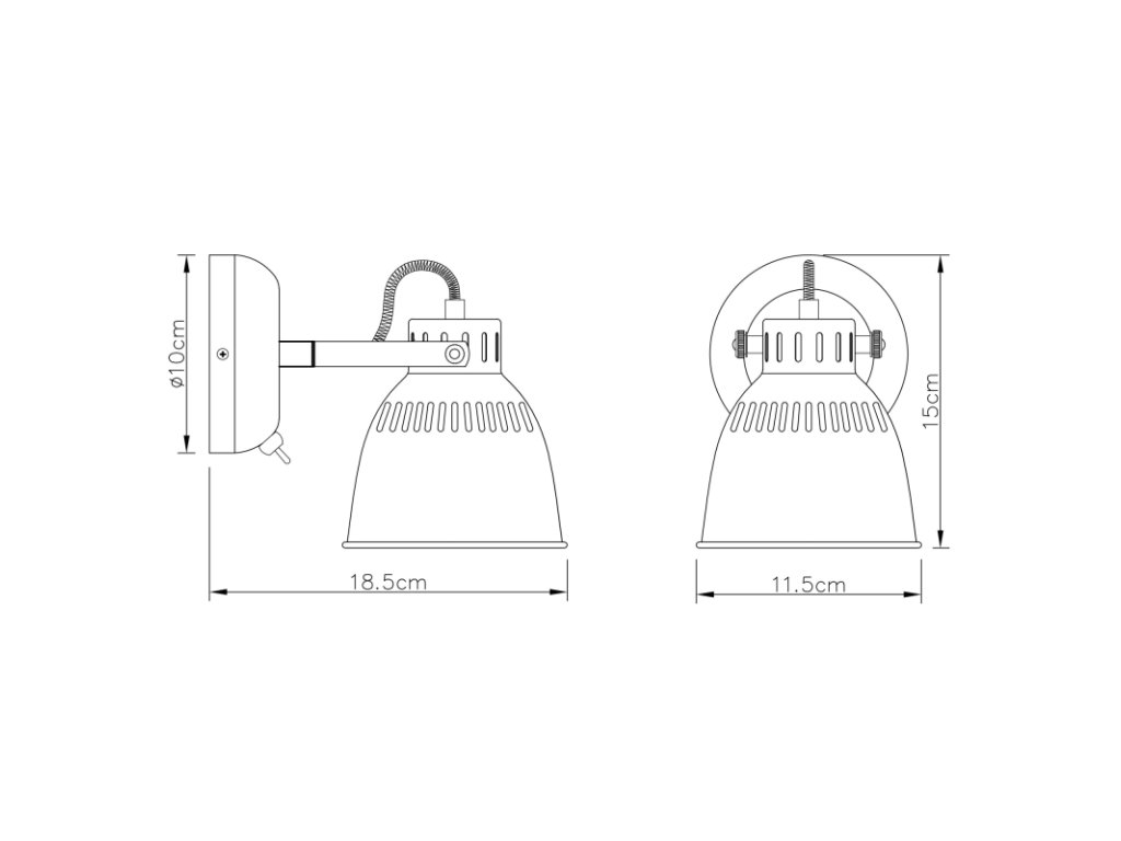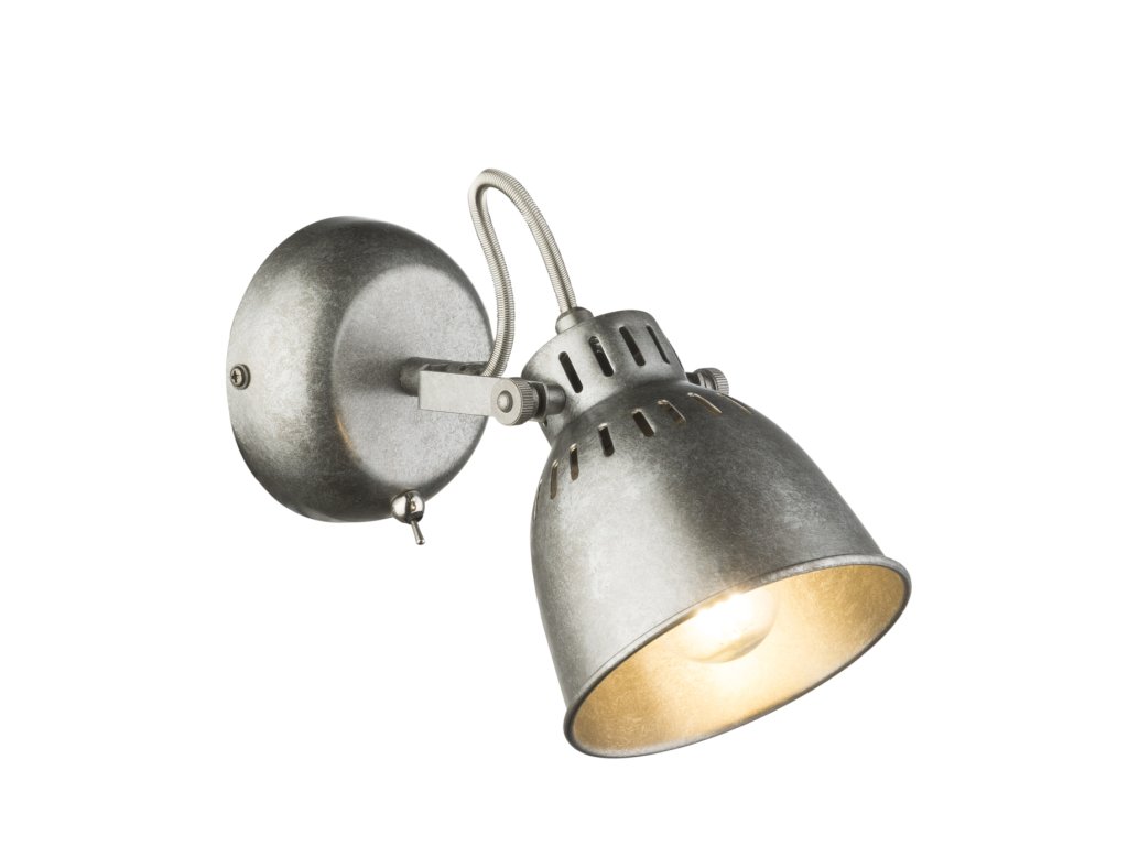 Nástěnné svítidlo, kov, tmavě šedá, vypínač, ŠxV: 12x15 cm, bez žárovky 1xE14, max. 40W 230V.
