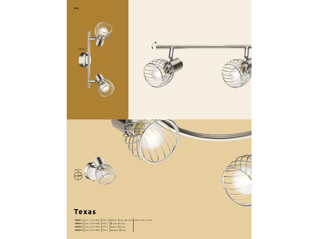 TEXAS 54809-1 GLOBO nástěnné | 1x E14 | nikl | Š: 8 cm |