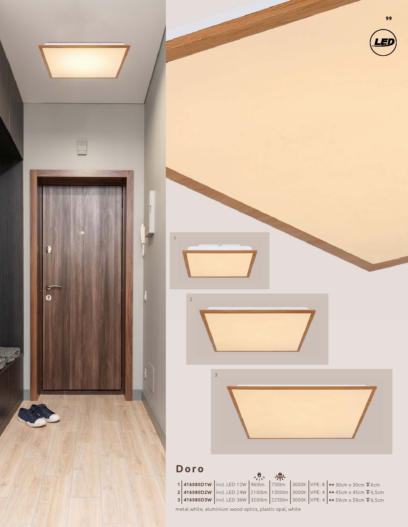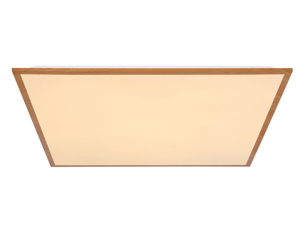 Čtvercové, ultra ploché stropní LED svítidlo ve vzhledu dřeva (590x590x65 mm) se perfektně hodí do každé místnosti s vysokými nároky na osvětlení. Světlo je distribuováno velmi rovnoměrně a nechá váš pokoj zářit teplým bílým světlem (3000 K). Design je elegantní a neutrální. Díky použití lehkých materiálů jako je plast a hliník je i přes svou velikost velmi lehký. Díky nízké spotřebě energie je toto LED svítidlo energeticky úsporné a tím i velmi ekologické.