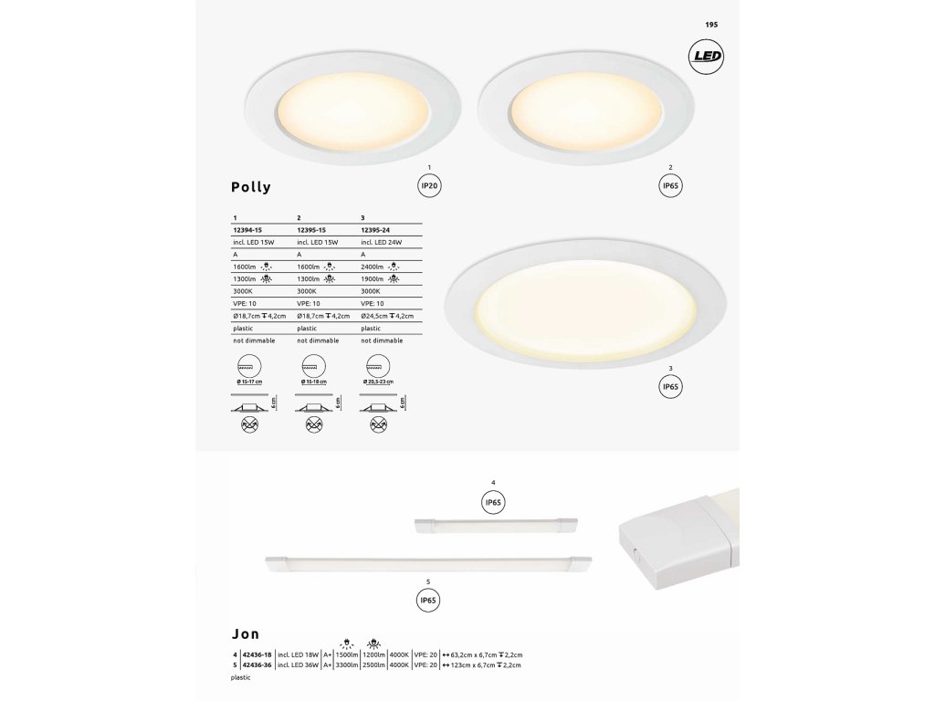 Série Jon zahrnuje neutrální a všestranné podskříňové lampy. Tato 123 cm dlouhá opálově bílá plastová lampa je ideální pro venkovní použití díky svému krytí IP65. Nabízí 2500 lumenů a 4000K neutrální bílé světlo.
