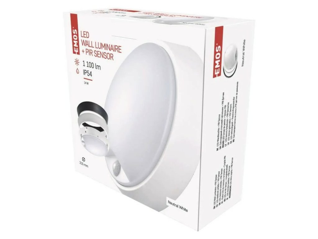 ZURI ZM3231 EMOS venkovní | LED | 14W | bílá | 4000K | PIR | IP54 | V: 21,5 cm |