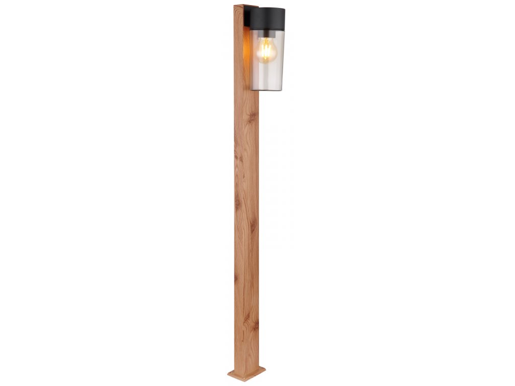 Skvělé venkovní světlo zaujme svým moderním designem. Na 1 m vysokém obdélníkovém nosníku ve vzhledu dřeva je válcové stínidlo z kouřového skla s nerezovými dekoracemi a paticí E27. Patice E27 umožňuje sami určit barvu a jas světla až do maximálního výkonu 40 wattů. Vzhledem k jejich dlouhé životnosti a úspoře energie doporučujeme LED žárovky z naší nabídky.