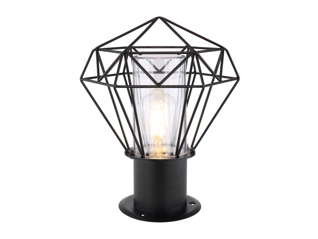 Venkovní svítidlo, nerez ocel černá, kov černý, plast průhledný, IP44, průměr 26 cm, výška 32 cm, bez žárovky 1xE27 LED, max. 15W 230V.