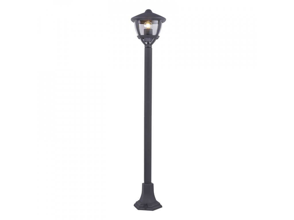 Venkovní svítidlo, hliník antracit, plast průhledný, IP44, DxŠxV: 175x175x1000 mm, bez žárovky 1xE27, max. 40W 230V.