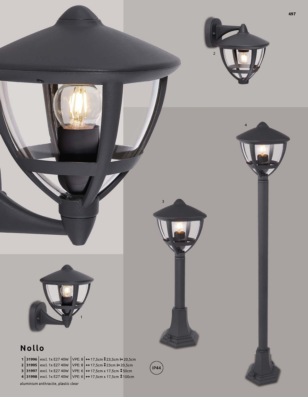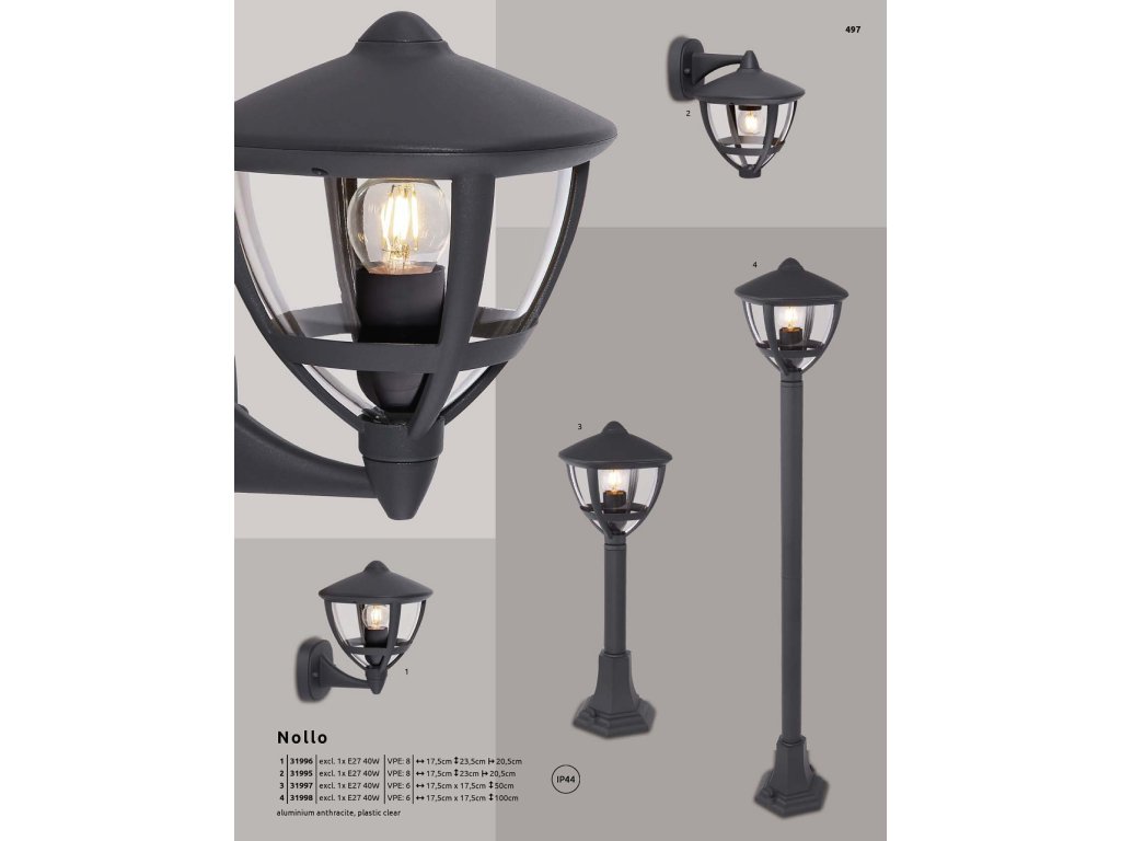 NOLLO 31998 GLOBO venkovní | 1xE27 | IP44 | černá | V: 100 cm |