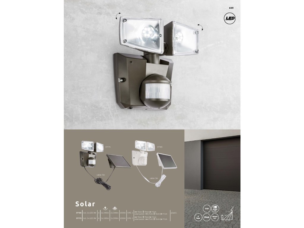 SOLAR 3718S GLOBO venkovní solární | LED | pohyb. senzor | IP44 | Š: 19 cm |