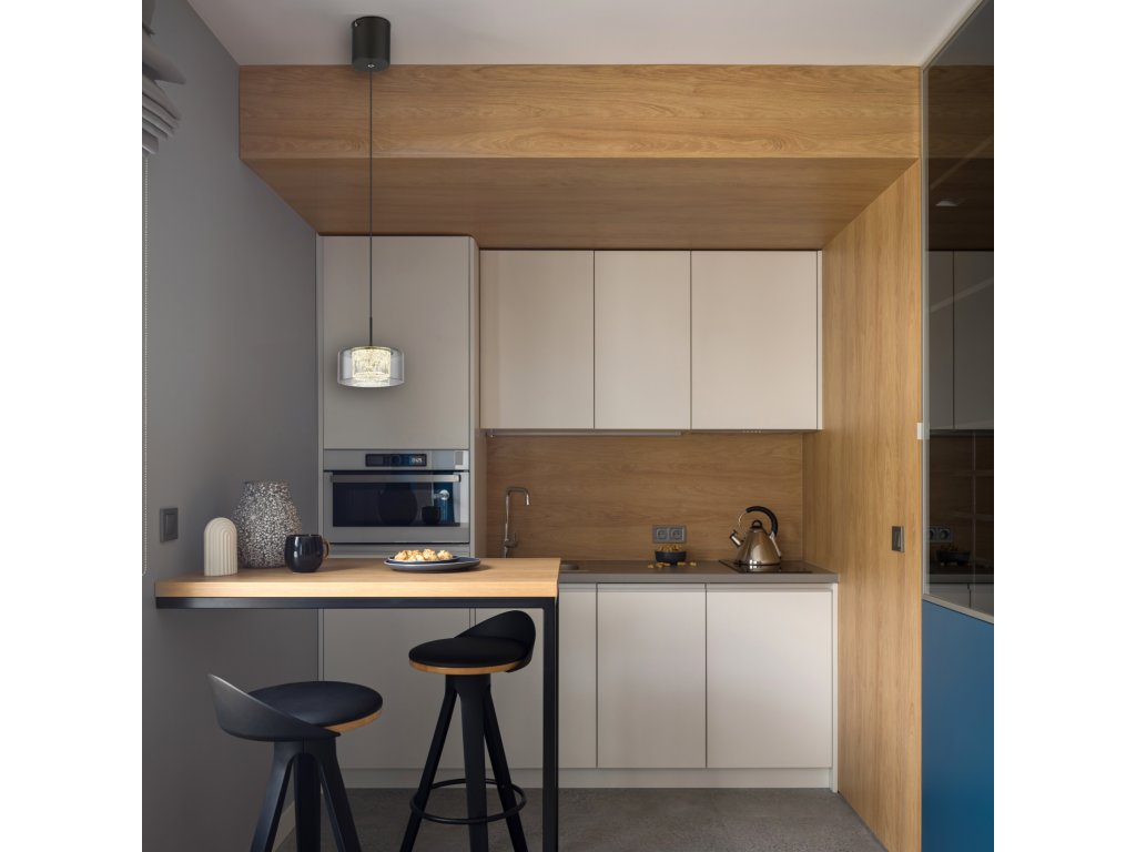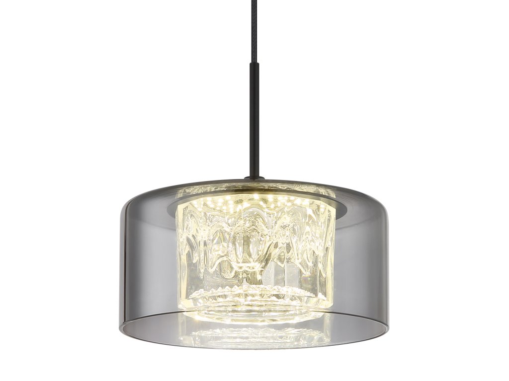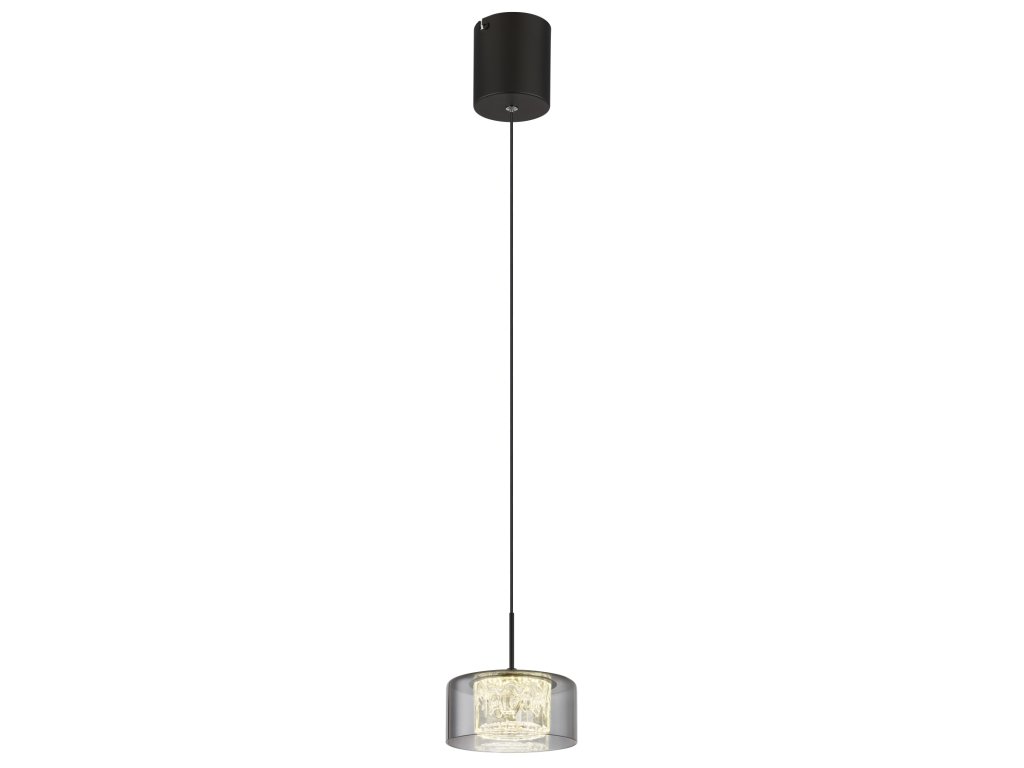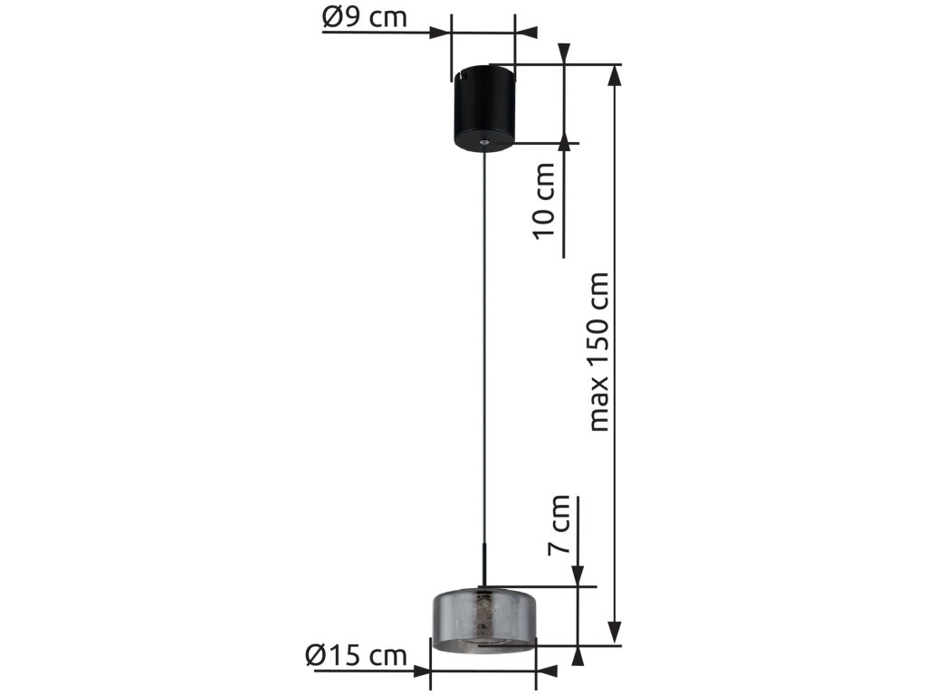Závěsné svítidlo, černý matný kov, kouřové sklo, čirý akryl, černý PVC kabel, možnost zkrácení výšky, průměr: 15cm, výška: 150cm, LED 6W 230V, zdroj 720lm, výstup 500lm, 4000K.