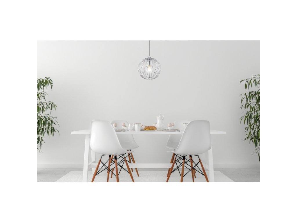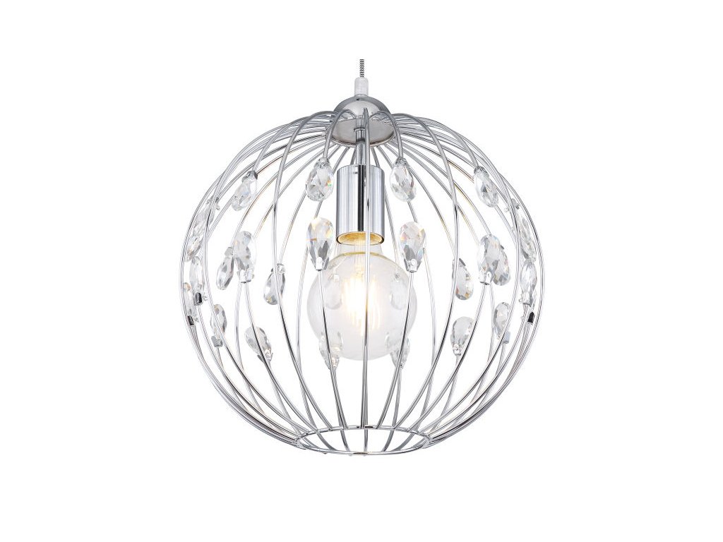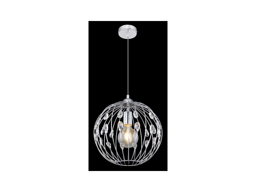 Závěsné svítidlo, kov chrom, stínidlo s dekorací, průměr 24 cm, výška max. 129 cm, bez žárovky 1xE27, max. 60W 230V.