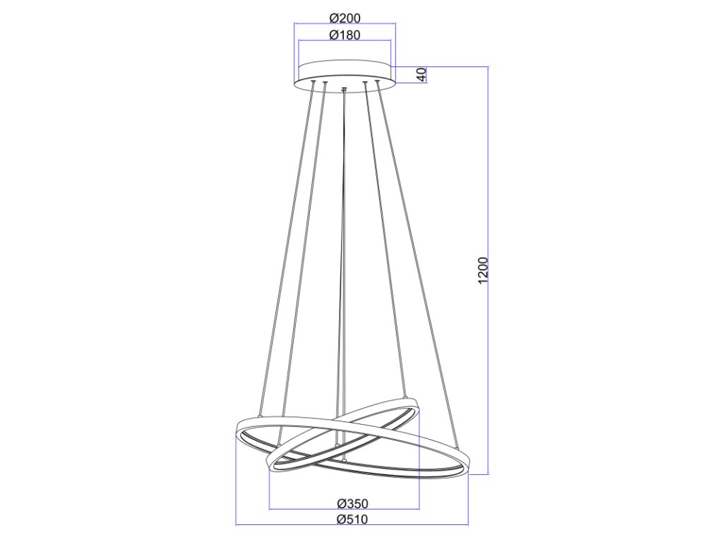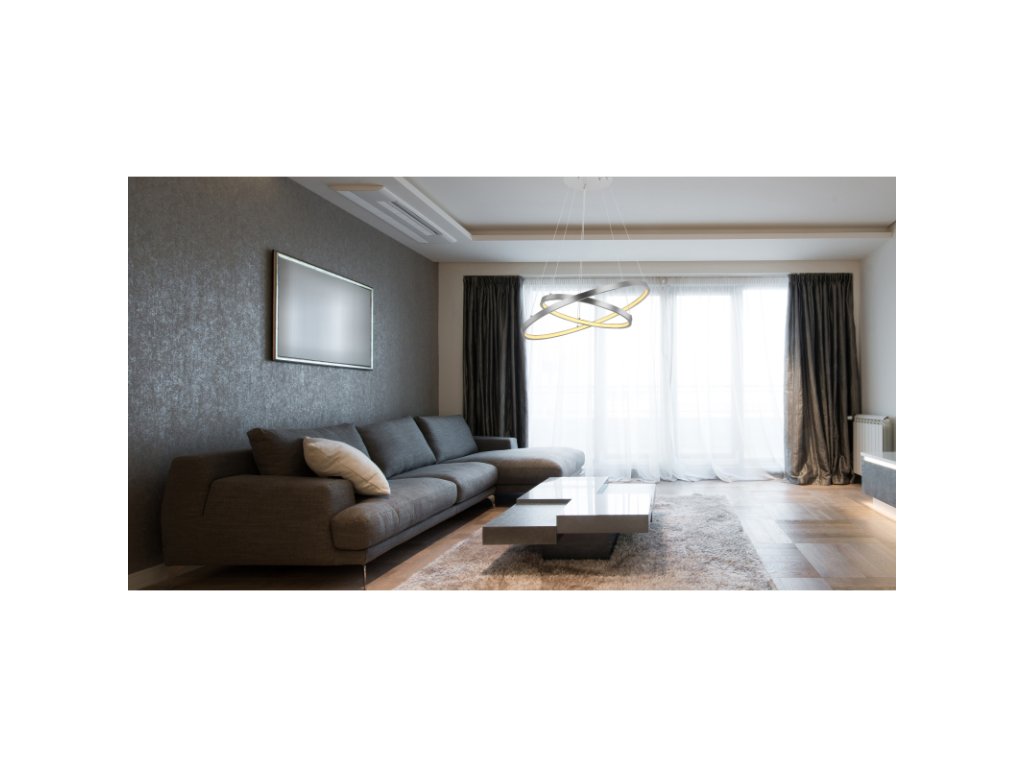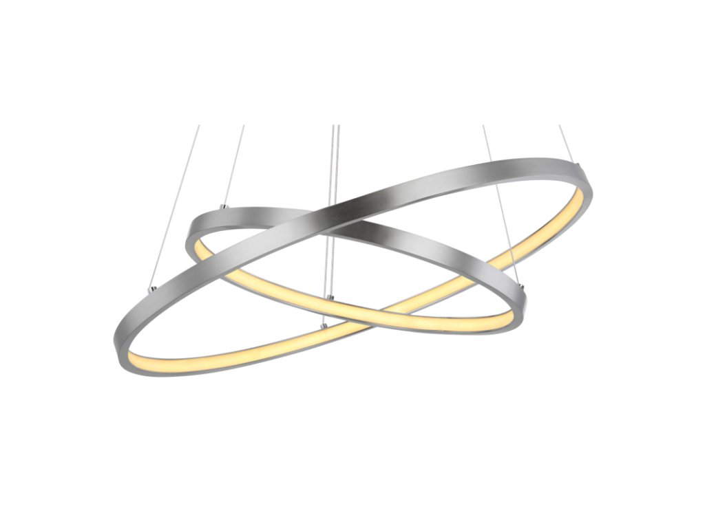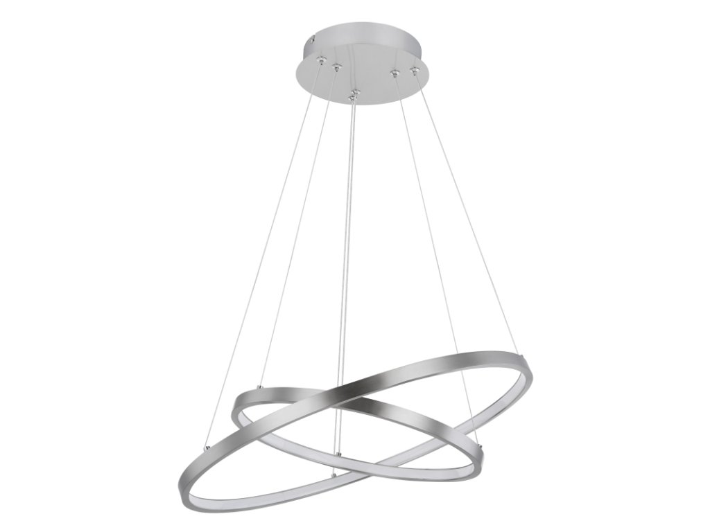 Závěsné svítidlo, nikl mat, plast opál, stmívatelné nástěnným vypínačem, paměťová funkce, průměr 51 cm, výška max. 120 cm, včetně 1xLED 42W 230V, zdroj 5000lm, výstup 1500lm, 3000K.