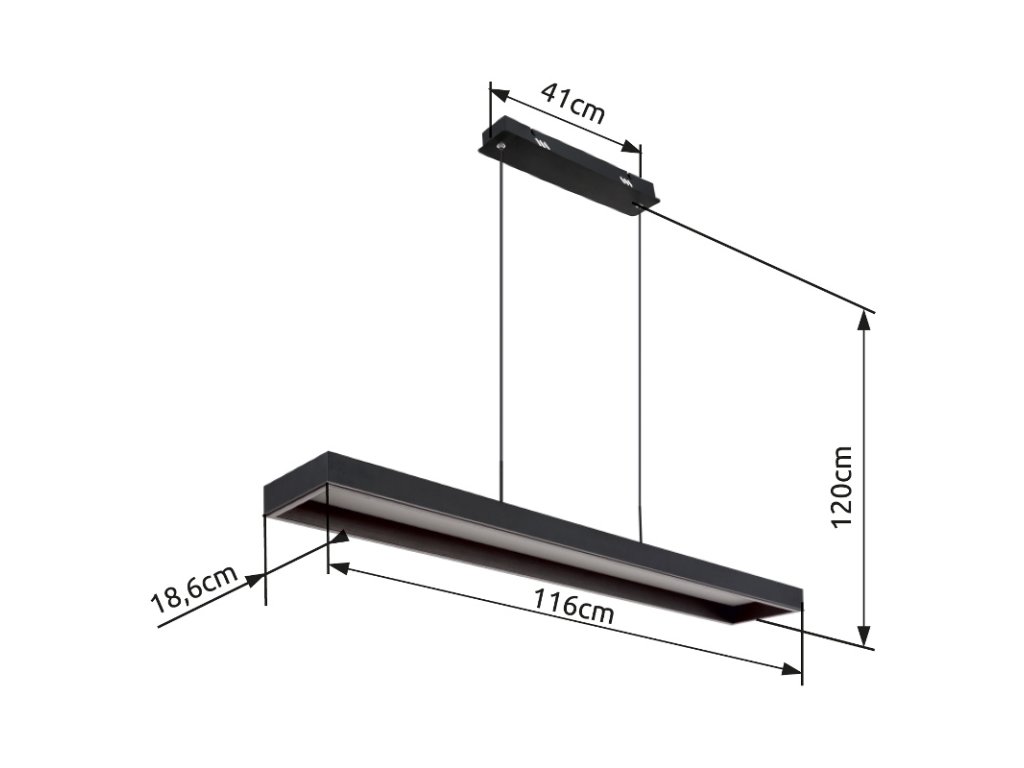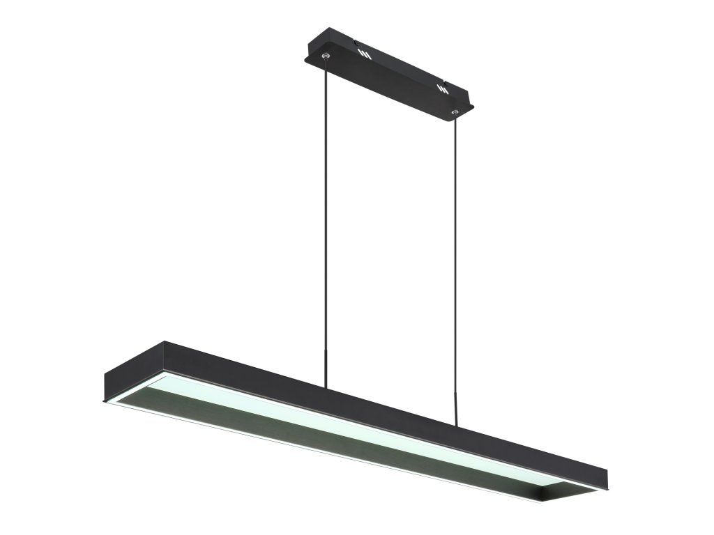 Závěsné svítidlo, kov černý, hliník antracit, akryl bílý, stmívatelné, několik úrovní pomocí nástěnného vypínače, paměťová funkce, dál. ovládání, DxŠx výška 1160x186x max.1200 mm, včetně LED 70W 230V, zdroj 600-8941lm, výstup 300-5492lm, 2700-6500K.