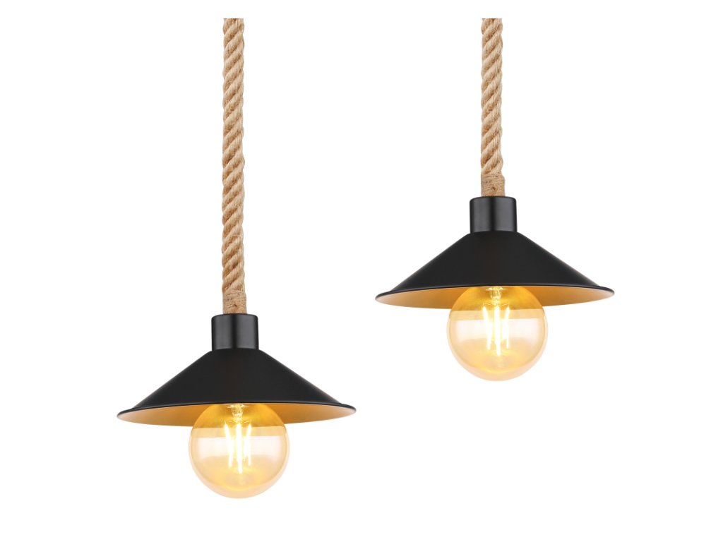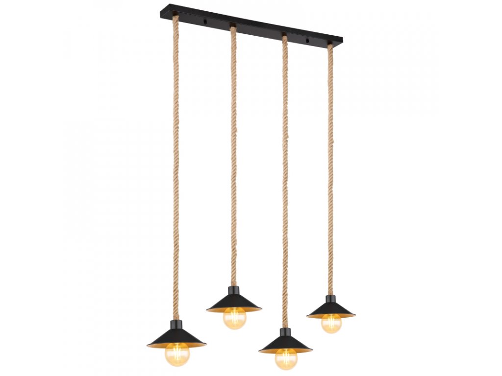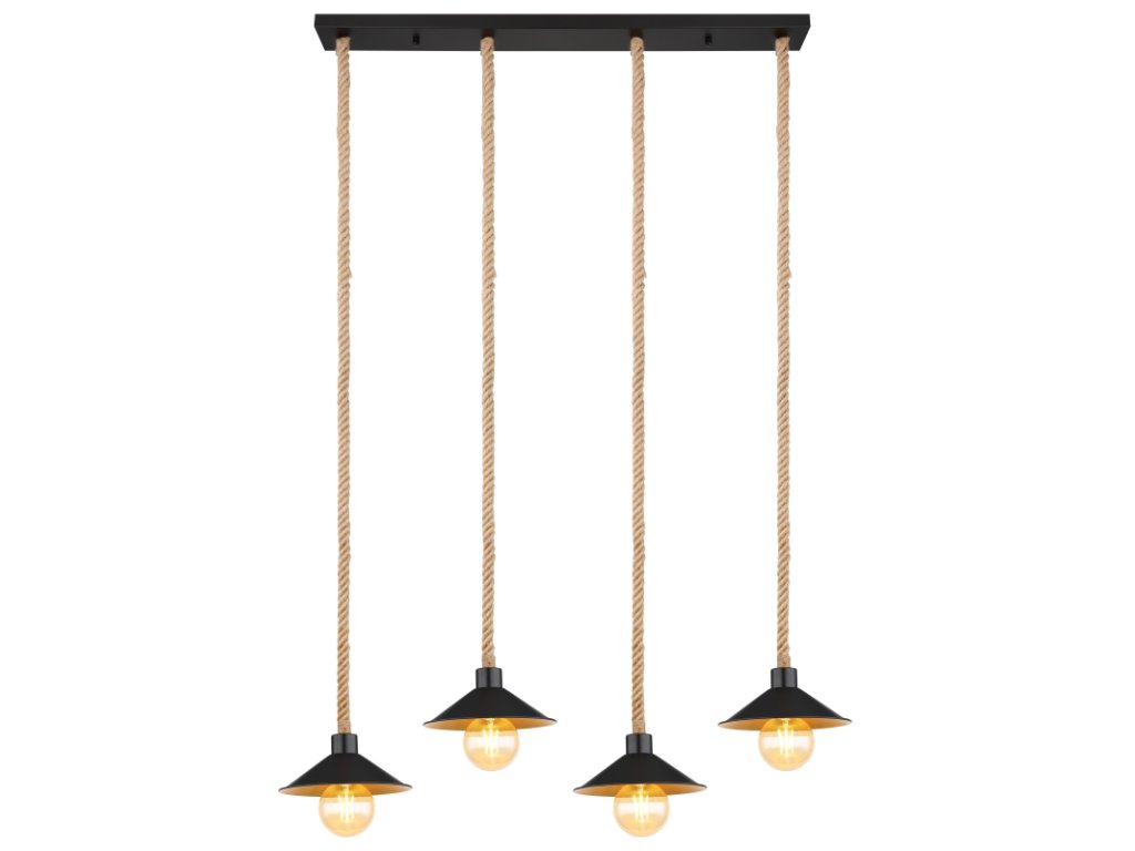 Závěsné svítidlo, kov černý a zlatý, lano, DxŠxV: 113x22x max.170 cm, bez žárovek 4xE27, max. 60W 230V.