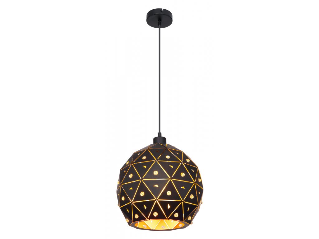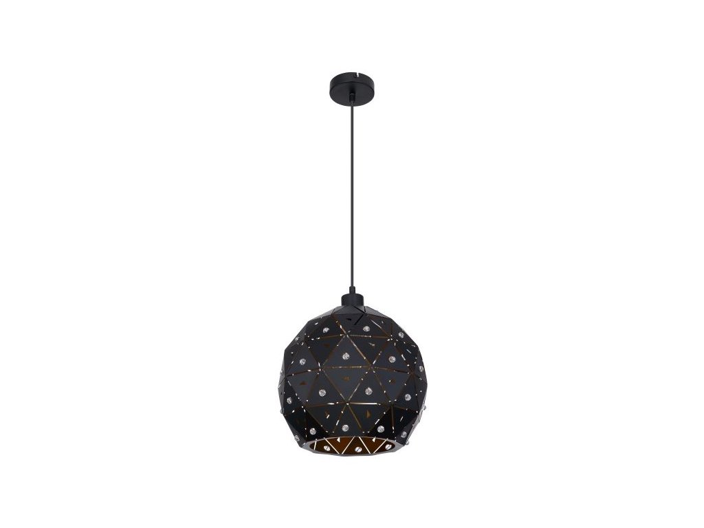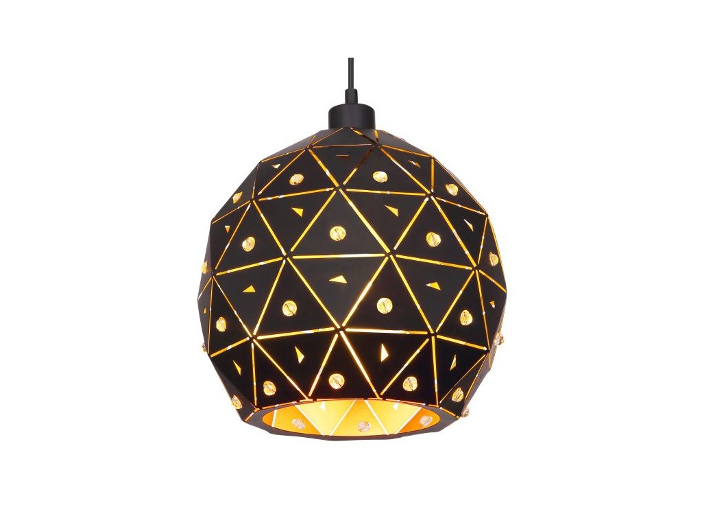 Závěsné svítidlo, kov černý matný, krystaly K9 čiré, stínítko uvnitř zlaté, průměr 25 cm, výška max. 120 cm, bez žárovky 1xE27, max. 60W 230V.
