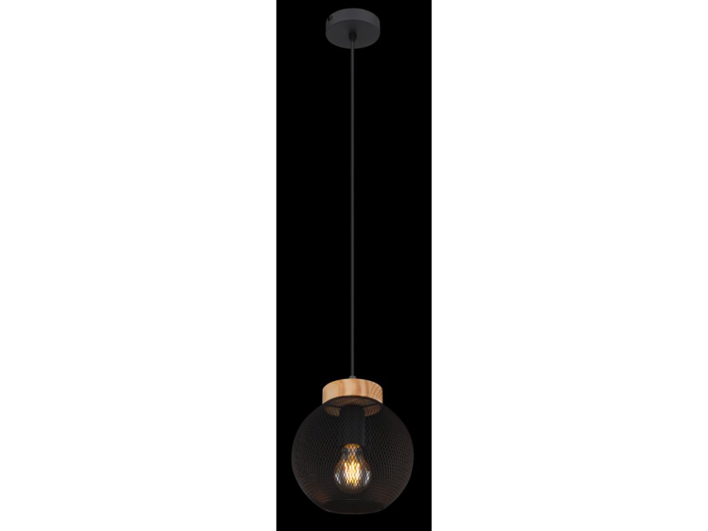 Závěsné svítidlo, kov černý, hnědé dřevo, průměr 20 cm, výška max. 120 cm., bez žárovky 1xE27, max. 60W 230V.