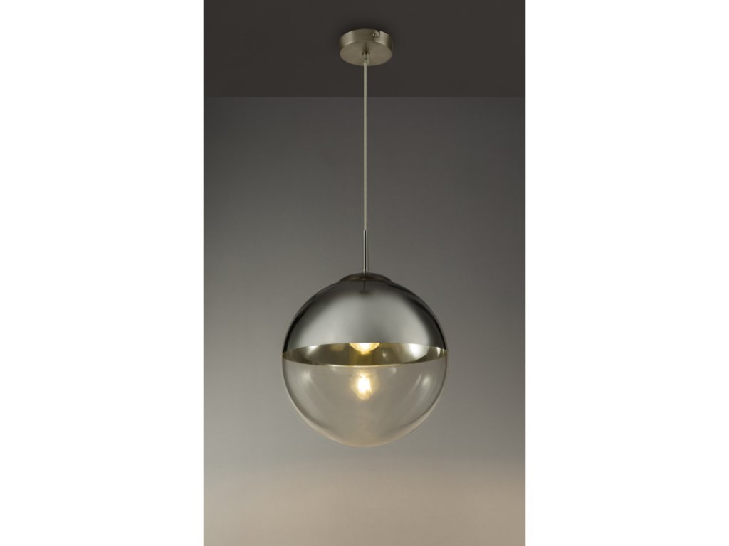 Moderní závěsná lampa ze série Varus zaujme svým krásným vzhledem. Průměr skleněného stínidla je 33cm a vyčnívá do místnosti o výšce 120 cm. V horní části je skleněná koule niklově matná. Svým designem zaručeně upoutá pozornost v každém obývacím pokoji nebo ložnici. Díky patici E27 máte možnost určit osvětlovací těleso až do maximálního výkonu 40 wattů. Podle toho, jakou barvu světla a intenzitu světla byste chtěli. LED žárovky doporučujeme pro jejich dlouhou životnost a úsporu energie. Závěsné svítidlo můžete velmi dobře kombinovat s ostatními předměty z této série.