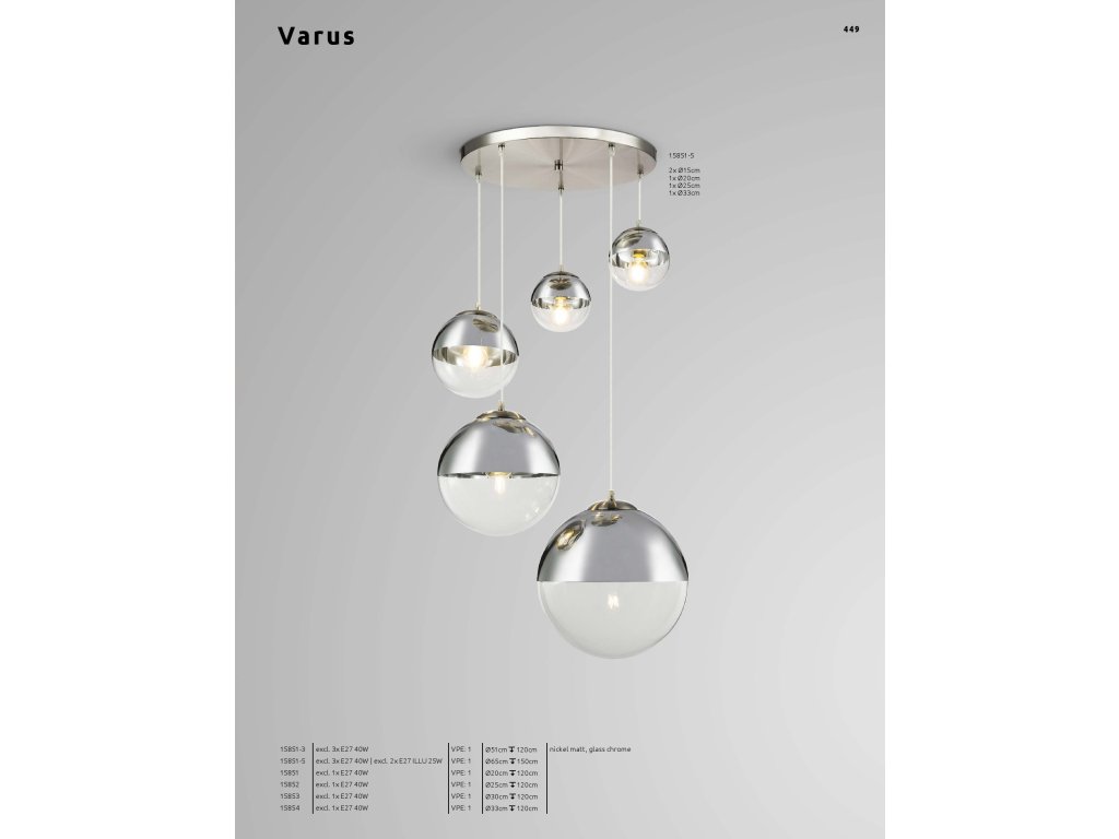 VARUS 15854 GLOBO závěsné | 1x E27 | stříbrná | Š: 33 cm |